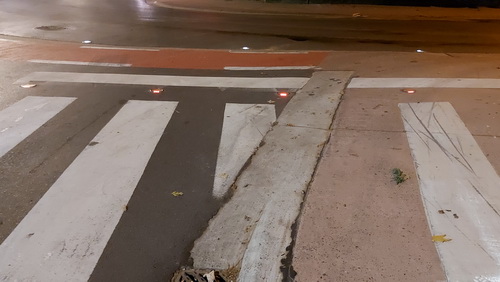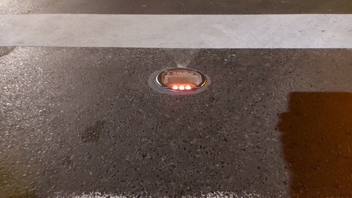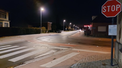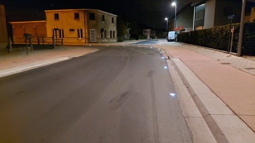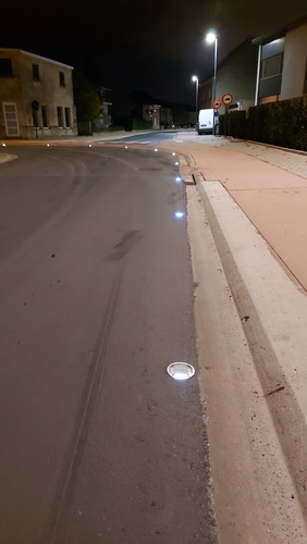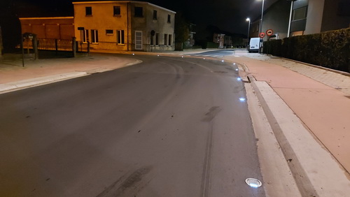 ILLUXYS stelde de ILSE-140 enkelzijdig wit steady als bocht begeleiding en de enkelzijdig rood steady bij de STOP streep. In het voorverkoop traject werden ook eerst de produkten geplaatst op het wegdek om de helderheid en de zichtbaarheid te checken. Zo kon ook al een eerste idee gevormd worden van het aantal benodigde elementen.